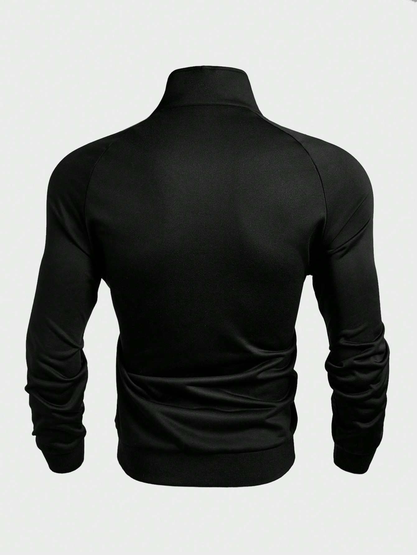 Manfinity KASUA Men??s Front Zip Up Long Sleeve Printed Minimalist Sweatshirt, Casual Daily Wear