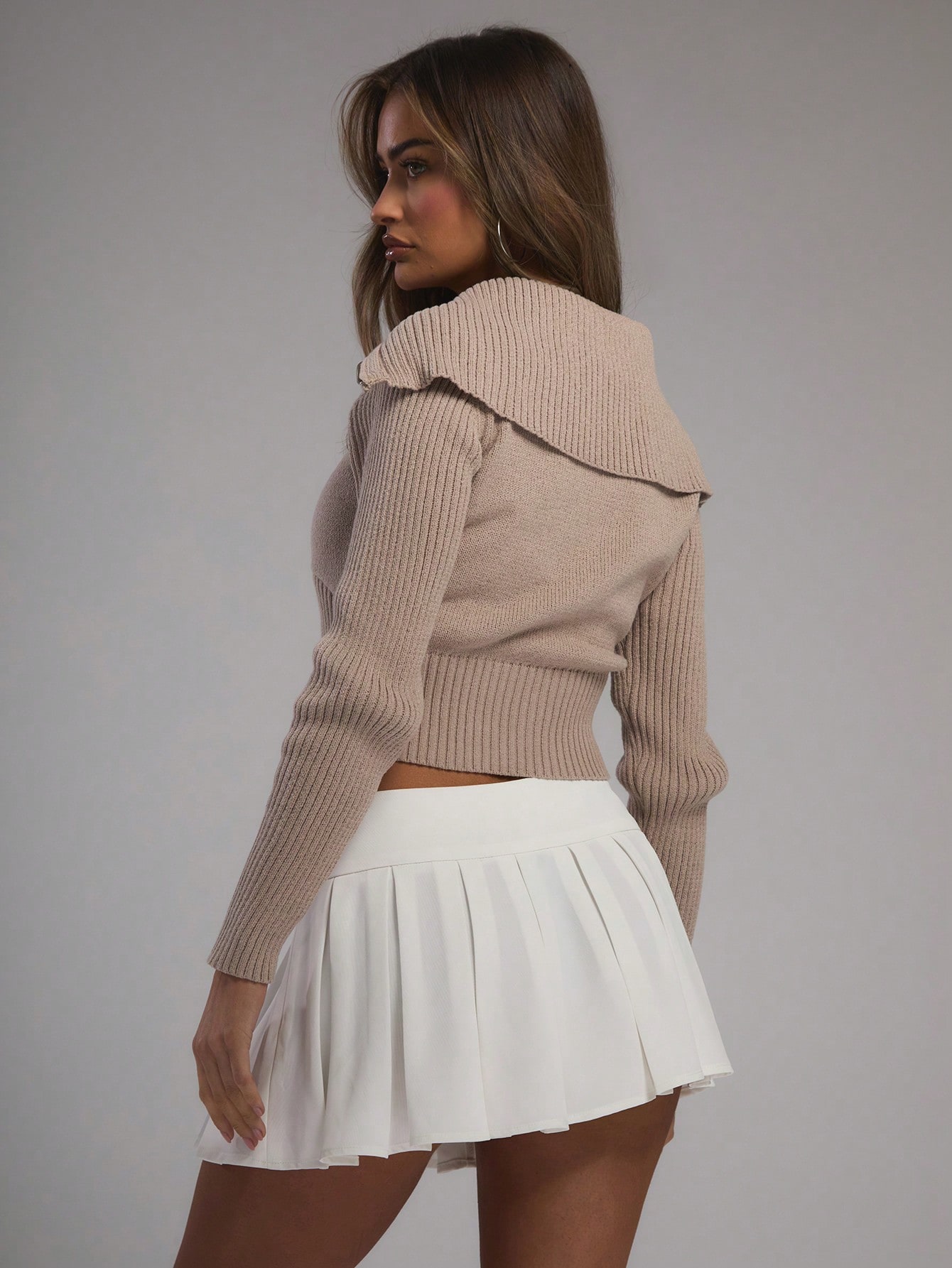 MUSERA Fall Clothes Jersey Rib Oversized Collar Zip Through Top